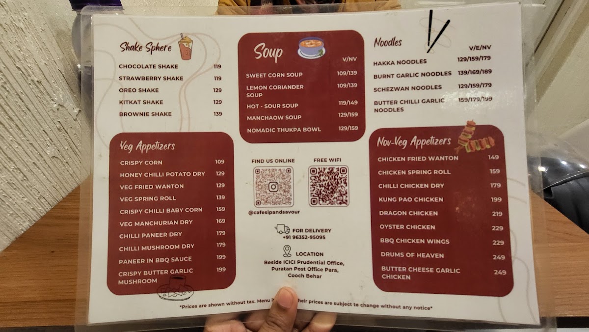 If you're in Cooch Behar and in search of a cozy spot to sip on your favorite beverage and chat with friends, look no further than Sip & Savour. Nestled beside ICICI Prudential Life Insurance and near Senco Gold & Diamonds at Raj Rajendra Narayan Rd, this charming cafe is a delightful oasis away from the hustle and bustle of daily life.